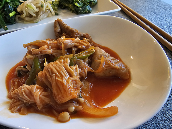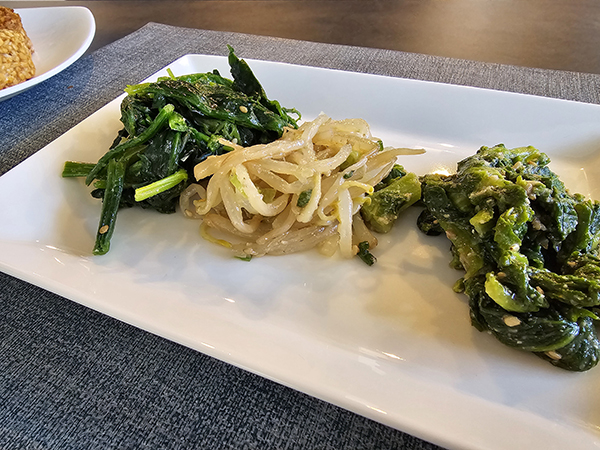 彩り豊かな「ほうれん草・もやし・菜の花」の3種のナムルは、シャキシャキとした食感と旬の香りが絶品。